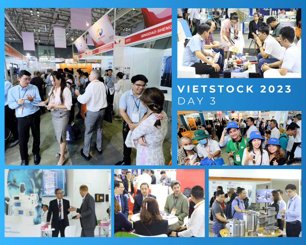 Triển lãm Vietstock 2023 chính thức khép lại, chúng tôi xin cảm ơn các đơn vị triển lãm, đối tác, khách mời và khách tham quan, cùng nhau tạo nên thành công rực rỡ tại Vietstock lần thứ 11. Hi vọng rằng Triển lãm Vietstock tiếp tục là nơi bạn có thể thu thập và cập nhật thông tin ngành chăn nuôi & thủy sản và thị trường nói chung, giúp các doanh nghiệp kết nối với thị trường phù hợp, đồng thời thiết lập các kết nối và quan hệ kinh doanh lâu dài trong lĩnh vực chăn nuôi, thức ăn chăn nuôi và nuôi trồng thủy sản.