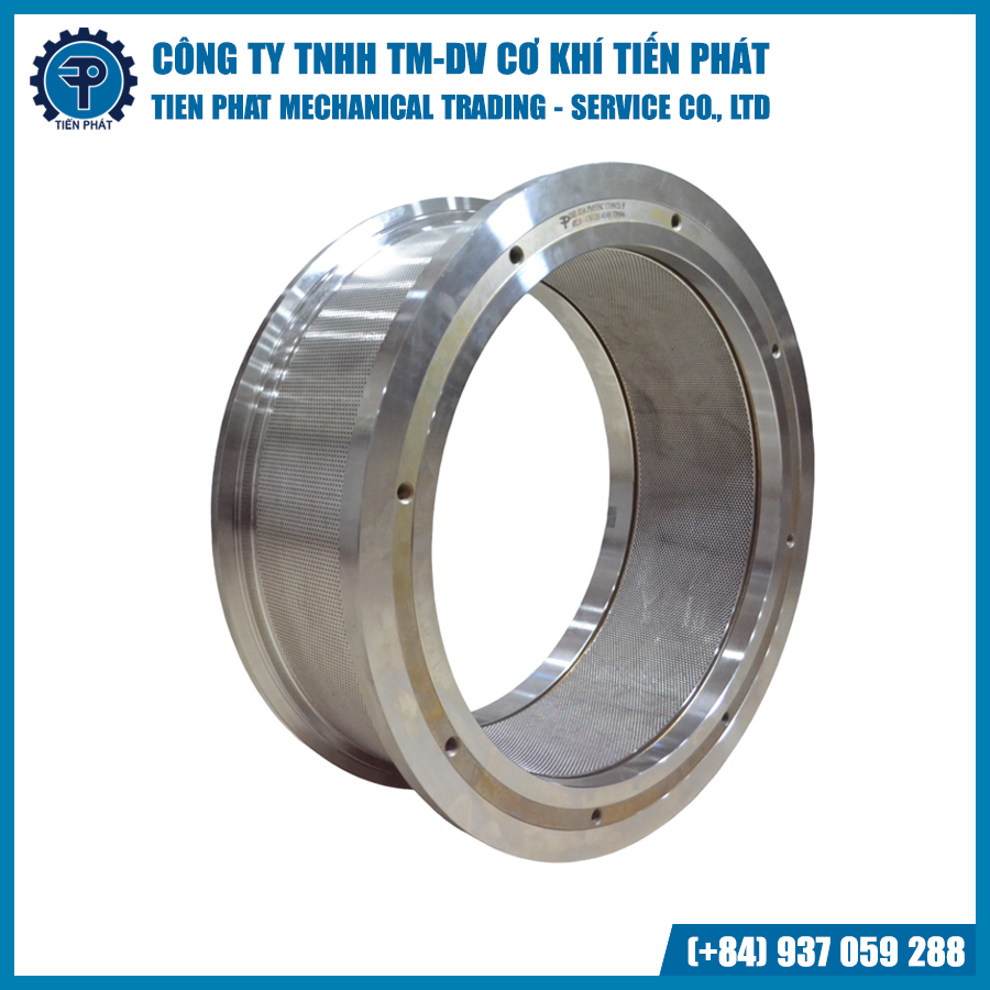 Khuôn ép viên (Pellet Ring Die) là bộ phận cốt lõi của máy ép viên, giữ vai trò định hình và tạo viên thức ăn trong quá trình ép. Khuôn có dạng vòng tròn với hệ thống lỗ ép được gia công chính xác, cho phép nguyên liệu đã được trộn và xử lý đi qua dưới áp suất cao để tạo thành viên thức ăn có kích thước, hình dạng và độ bền đồng đều.